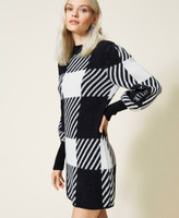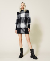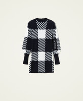 Abito fitted jacquard a quadri collezione Actitude con maniche a palloncino, logo ricamato a filo, spalline imbottite.