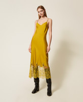 Abito longuette in raso e pizzo
