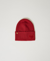 Berretto in maglia di misto modal con patch a cuore con strass e ricamo a filo.
