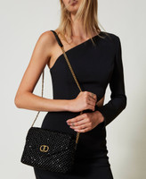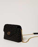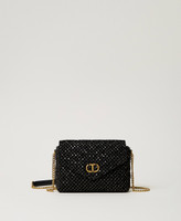 Borsa a tracolla 'Dreamy' piccola in velluto ricamato con filo lurex e paillettes in tinta con logo Oval T in metallo ottone chiaro. Ha chiusura con patta e magnete, tracolla in catena con spallaccio effetto pelle, foderata. Perfetta per party look e cerimonie.