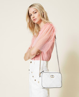 Borsa a tracolla 'Jolie' con trapuntatura a losanghe, catena in galvanica nichel e color oro, chiusura con zip, logo Oval T. Twinset porta il suo messaggio di gentilezza e accoglienza in tutte le lingue del mondo: 'Jolie' significa 'carina' in francese.