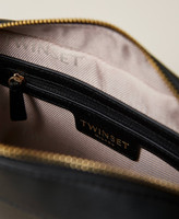 Borsa con borchie a piramide arrotondata in metallo, chiusura con zip, tracolla regolabile, tasca esterna.