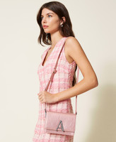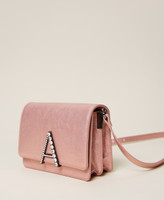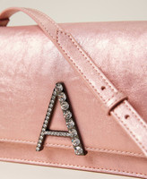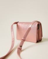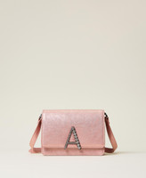 Borsa a tracolla collezione Actitude effetto nappa laminata con patta e magnete, logo con strass, doppio comparto.