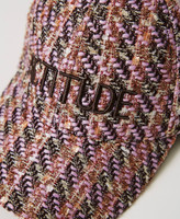 Cappello da baseball collezione Actitude in tessuto bouclé multicolor e filo di lurex con logo lettering ricamato a filo davanti, regolabile sul retro.