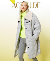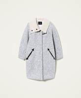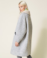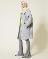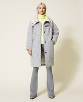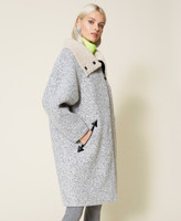 Cappotto collezione Actitude dalla linea ampia in bouclé, con dettagli in tessuto spalmato, chiusura con bottoni.
