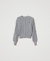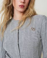 Cardigan coreana in cotone e cashmere con logo all over con lavorazione tridimensionale, collo tondo, chiusura con bottoni ricoperti in tono, maniche lunghe, profili rifiniti a costine, spilla logo Oval T in metallo, linea regular.