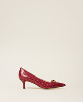 Décolleté in pelle con stampa cocco, Oval T in metallo, punta sfilata, tacco a stiletto e fondo in tunit.