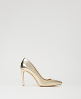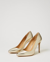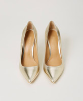 Décolleté laminate in pelle di vitello, dalla punta sfilata, con tacco a stiletto.