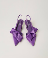 Décolleté sling back collezione Actitude in raso con fiocco, punta sfilata e tacco a rocchetto.
