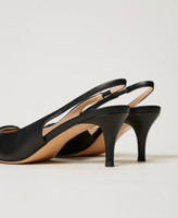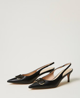 Décolleté sling back in pelle con Oval T smaltato in tono, punta sfilata, tacco basso a stiletto e fondo in tunit.