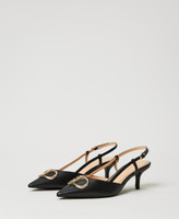 Décolleté modello slingback in pelle di vitello, con punta sfilata, logo Oval T davanti, fondo in tunit.