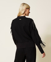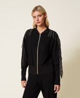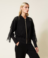 Felpa a bomber in viscosa stretch con maniche lunghe, polsini alti, frange con borchie su spalle e maniche, zip.