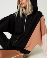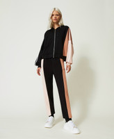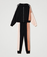 Completo collezione Actitude in punto Milano a tre colori con bande laterali ad intarsio, composta da felpa con zip e joggers con elastico in vita.