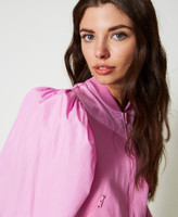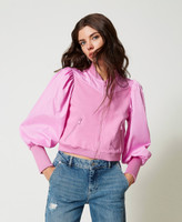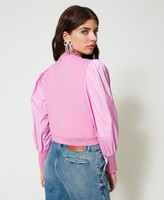 Giacca collezione Actitude in punto Milano con carré e maniche in taffetà, collo a bomber e polsi alti a costine, chiusura con zip