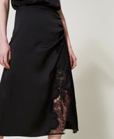 Gonna longuette in raso e pizzo