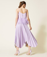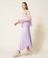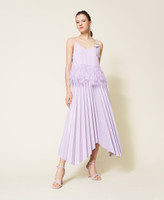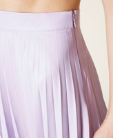 Gonna longuette collezione Actitude in tessuto spalmato plissé con fondo asimmetrico e zip al fianco.