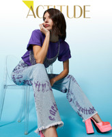 Jeans loose fit collezione Actitude con vita bassa, gamba dritta, stampa all over realizzata in capo, cinque tasche.