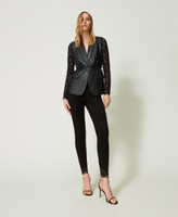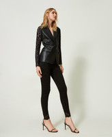 Metti in risalto la tua femminilità con un tocco personale scegliendo i leggings in pizzo macramè stretch a disegno floreale. Hanno l’elastico in vita, la fodera in crêpe de Chine stretch e il fondo smerlato. Con mini-dress o maxi-maglie oppure, oppure da indossare come pantaloni super skinny insieme a bomber e tacchi alti.