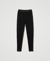 Leggings in pizzo macramè stretch a disegno floreale con fodera in crêpe de Chine e fondo smerlato.