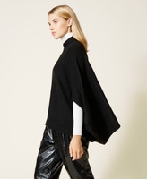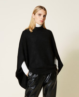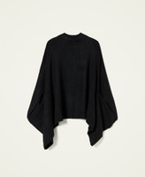 Maglia a mantella girocollo con aperture per braccia, fondo asimmetrico, riga verticale sul retro.