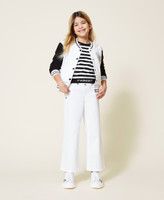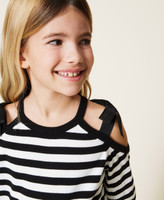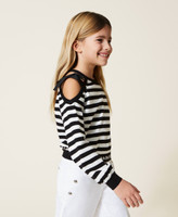 Maglia in misto cotone a righe con logo jacquard, aperture sulle spalle con fiocco in gros-grain, linea regular.
