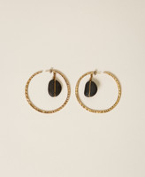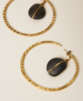 Orecchini ad anello in metallo effetto martellato con pietra pendente. Ha chiusura a perno e logo inciso.