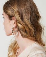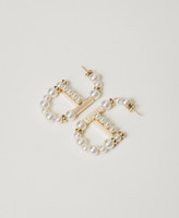 Orecchini con costruzione a Oval T con perle, logo lettering inciso, galvanica oro chiaro, chiusura con nottolino.