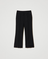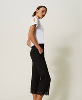 Pantaloni cropped collezione Actitude in tessuto tecnico con pizzo macramè al fondo, nervatura centrale, tasche alla francese.