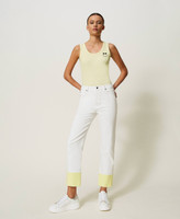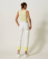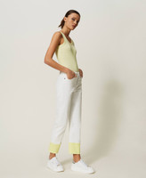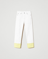 Pantaloni collezione Actitude in bull stretch con risvolto alto al fondo in contrasto di colore e cinque tasche.