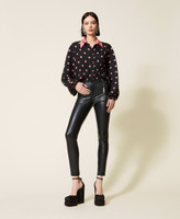 Pantaloni skinny collezione Actitude effetto pelle con zip al fondo e charm rimovibile con logo e castoni.