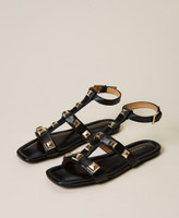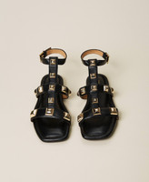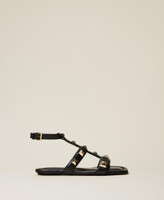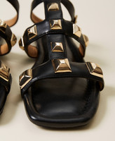Sandali flat in nappa con borchie a piramide arrotondata, cinturino alla caviglia, fondo in tunit.