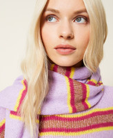 Sciarpa collezione Actitude in maglia jacquard a righe con profili rifiniti a costine.