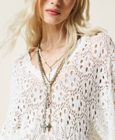 Set di tre collane rosario da indossare insieme o separati con pietre, strass e perle, galvanica ottone ramato.