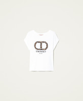 T-shirt in jersey di cotone con logo Oval T ricamato a filo e stampa animalier su tessuto, dalla linea regular.