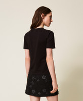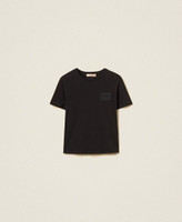 T-shirt in jersey di cotone con dettaglio di ricamo davanti in trasparenza e logo lettering. Ha collo tondo, maniche corte e linea regular.