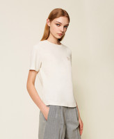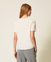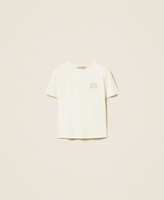 T-shirt in jersey di cotone con dettaglio di ricamo davanti in trasparenza e logo lettering. Ha collo tondo, maniche corte e linea regular.
