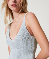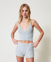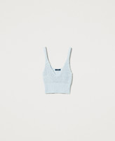 Top collezione Actitude in maglia di misto cotone a punto pannocchia con scollo a V e linea fitted.