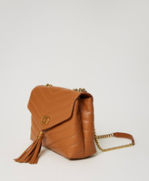 'Dreamy’ full grain Italian calf leather shoulder bag, diamond quilted, with sliding chain strap. Twinset brings its message of kindness and welcome in all languages of the world: In Italian, 'dreamy' would be 'sognante'.