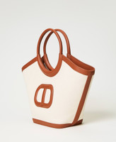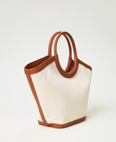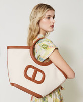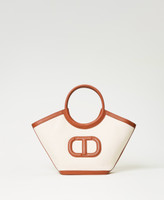 'Ring' canvas shopper with smooth leather-like finishes, double loop handle, embossed Oval T logo, lining.