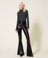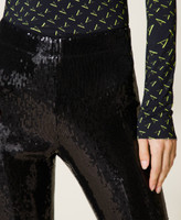 Actitude collection full sequin flared trousers with elasticated waist and inner logo print.