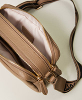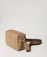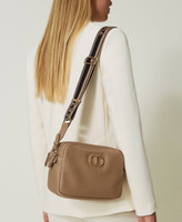 Faux leather bag with double compartment and zip, adjustable two-tone jacquard ribbon strap with logo, metal Oval T.