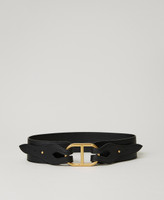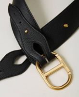 High waist sash belt with aged brass Oval T buckle, pin closure in front.