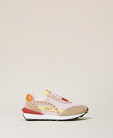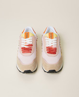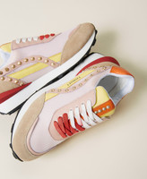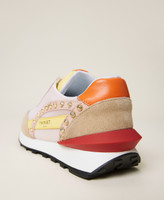 Calfskin running shoes with side stud detail, two-tone laces, rubber sole.