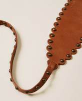 Leather sash belt with scalloping and appliquéd studs on the trim, lace-up closure.