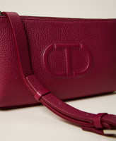 Leather shoulder bag with embossed Oval T logo, bellow construction and double compartment with zip.