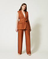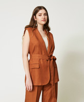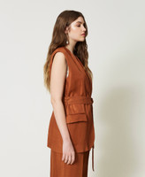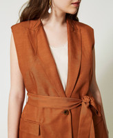 - 83% viscose 17% linen. Lining: 68% acetate 32% polyester. Belt: 83% viscose 17% linen.