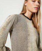- 87% wool 8% polyester 5% metallic polyester. Details: 100% polyester.