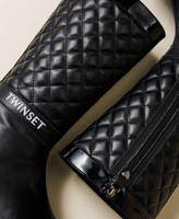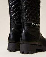 Leather boots with matelassé leg, contrasting logo on the side, inner zip and rubber sole.