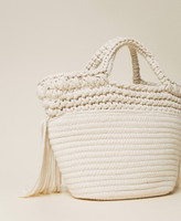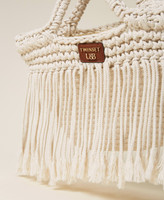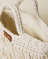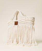 Tightly knit rope for this shopper with handles, rope fringe border, leather effect plate with logo, inner lining with pockets. Creative and contemporary, it will add an up-to-date touch to your holiday outfits.