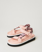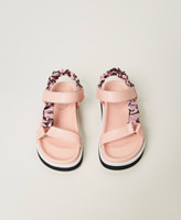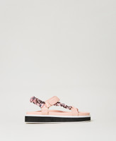Sandały techniczne kolekcji Actitude z wstawkami z drukowanego materiału, asymetryczne zapięcie T-bar na rzep, podeszwa z tunitu.